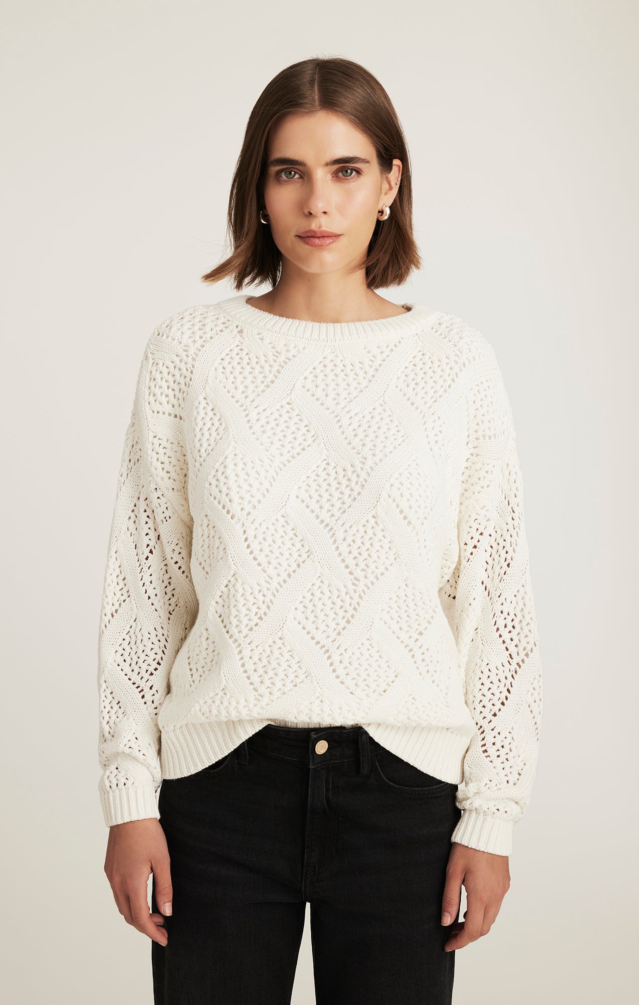 Be the first to review “CABLE-KNIT SWEATER IN ANTIQUE WHITE”