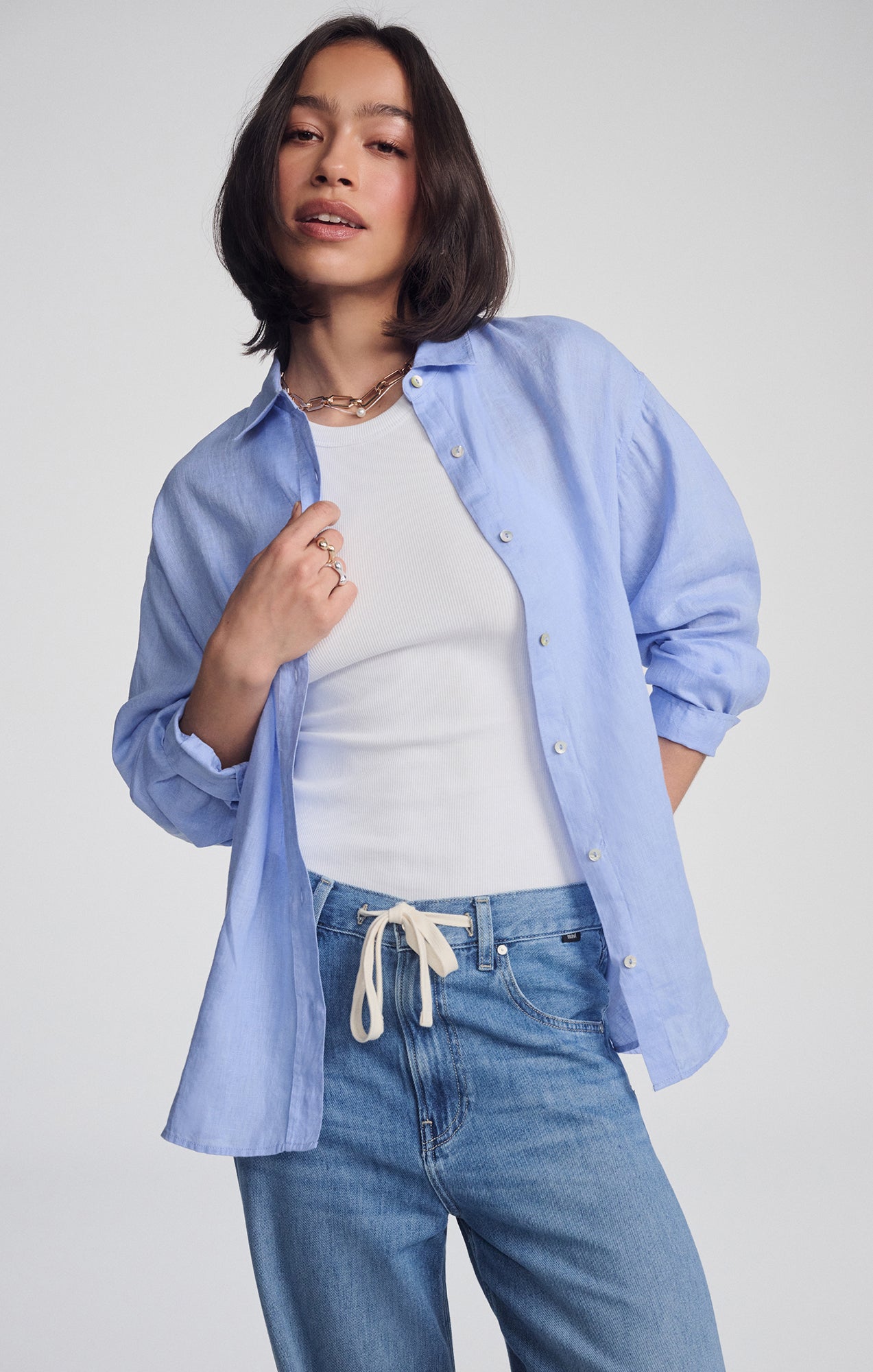 LINEN BUTTON-UP SHIRT IN BLUE ...