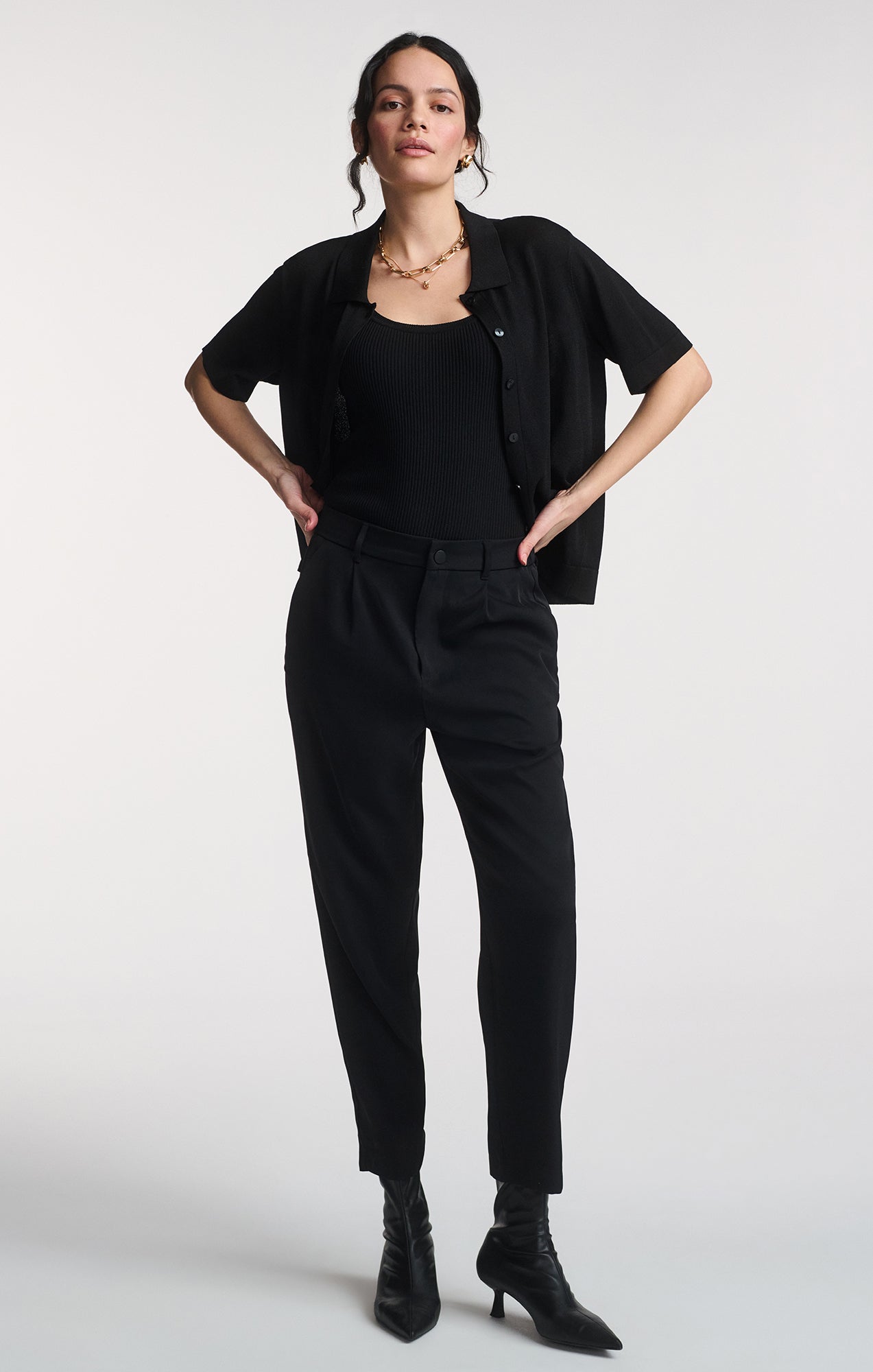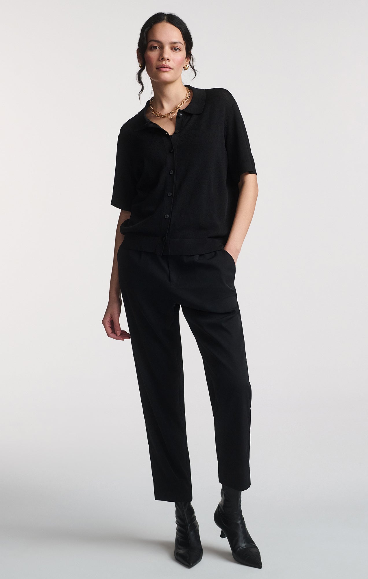 Be the first to review “SHORT SLEEVE POLO CARDIGAN IN BLACK”