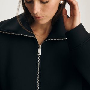 Be the first to review “SPORTY LUXE ZIP-UP SWEATSHIRT IN BLACK”