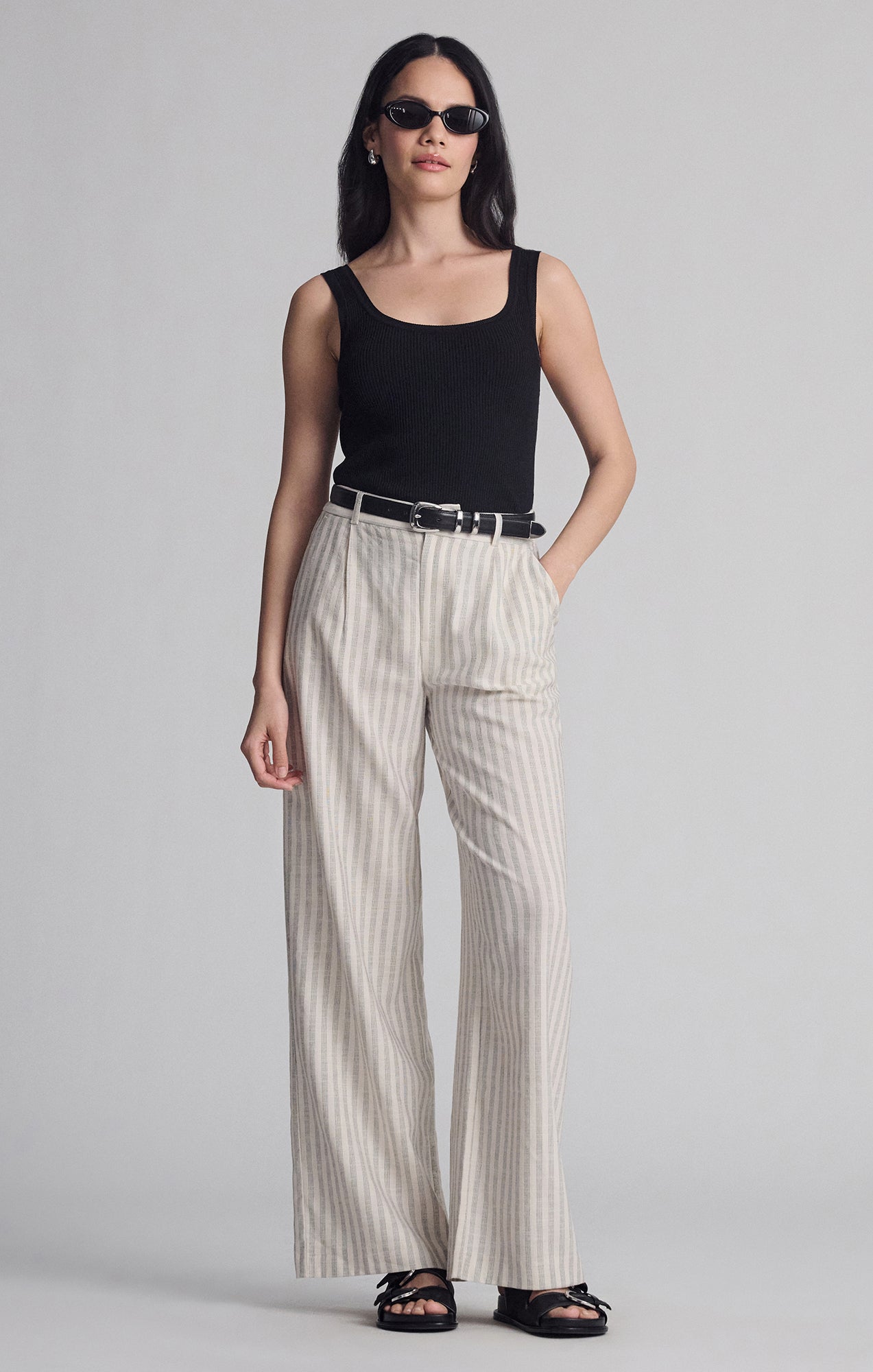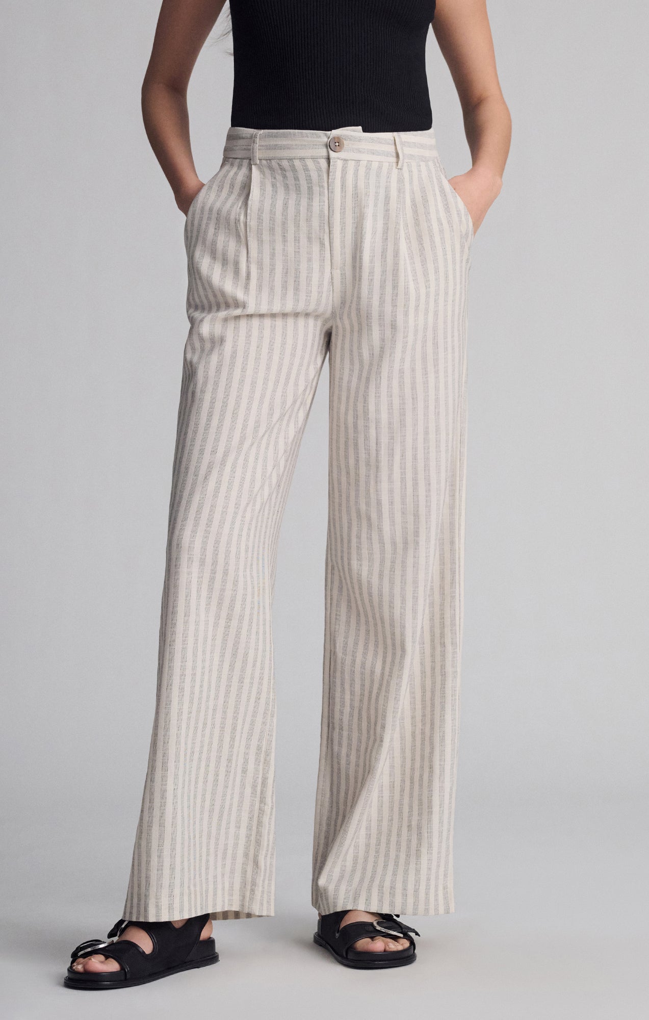 Be the first to review “WOVEN BUTTON PANTS IN BLACK STRIPE”